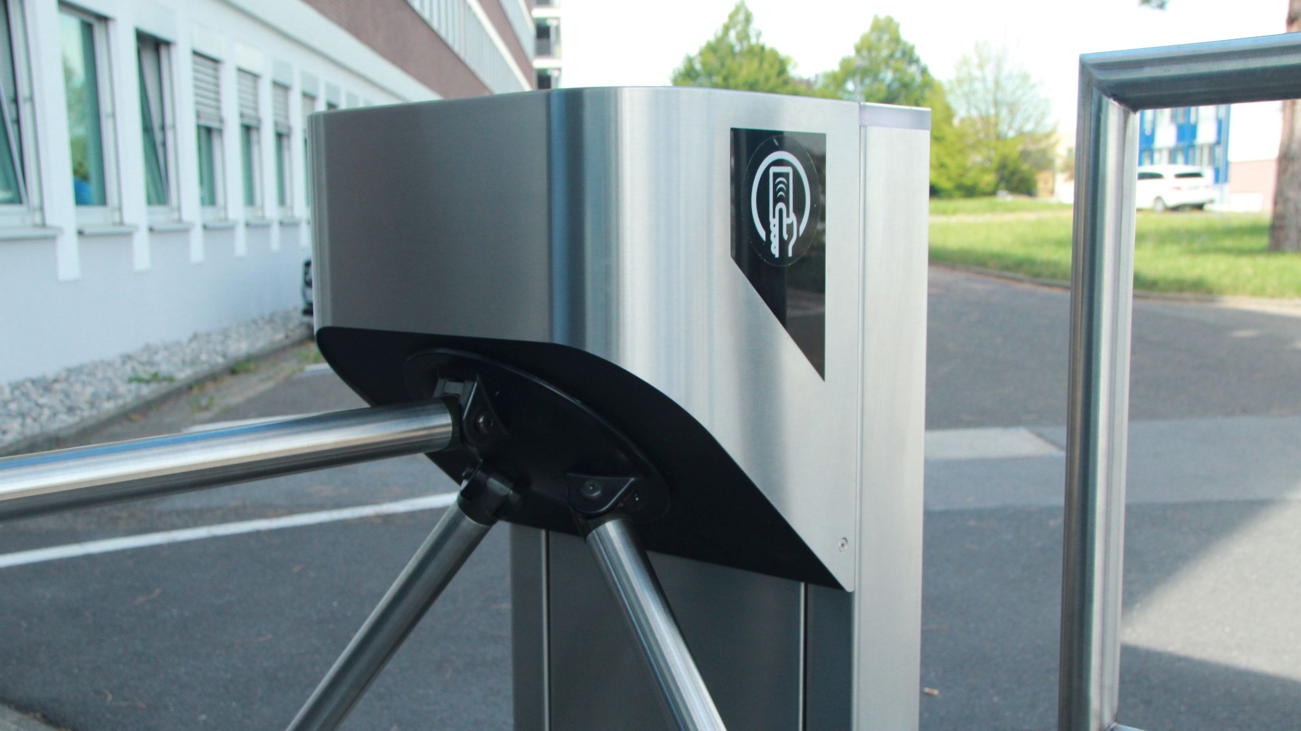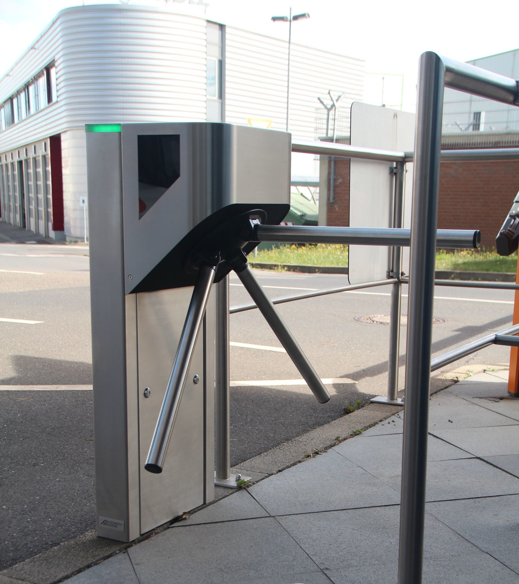 Drehsperren mit Transponder-Lösung regeln Zutritt im Pförtnerbereich und zum Verwaltungsgebäude