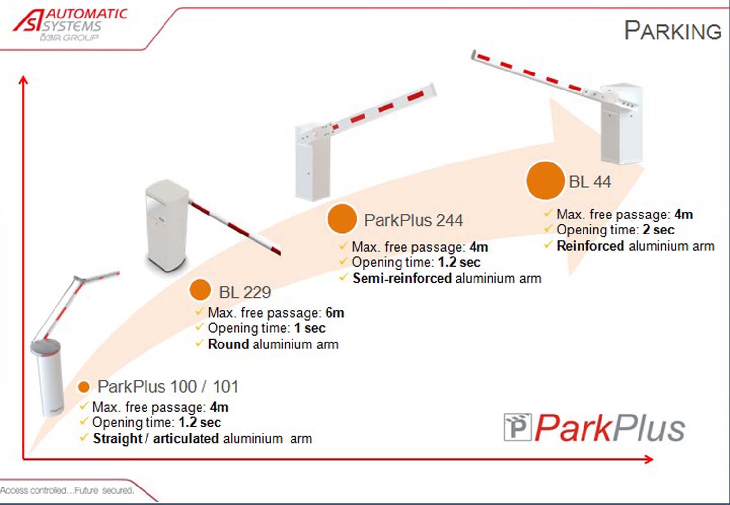 Das komplette Automatic Systems-Angebot an Parkschranken und deren Eigenschaften im Überblick. Klicken Sie auf das Bild unten, um es zu vergrößern.
