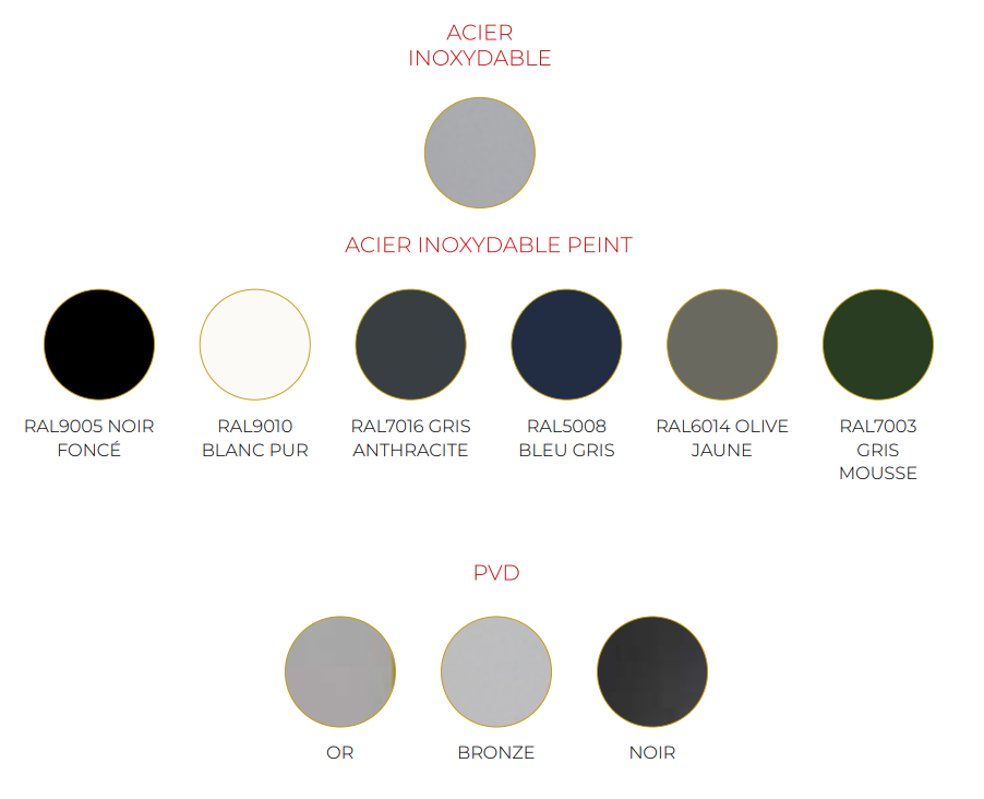 Nous proposons un grand choix de couleurs et de finitions :
