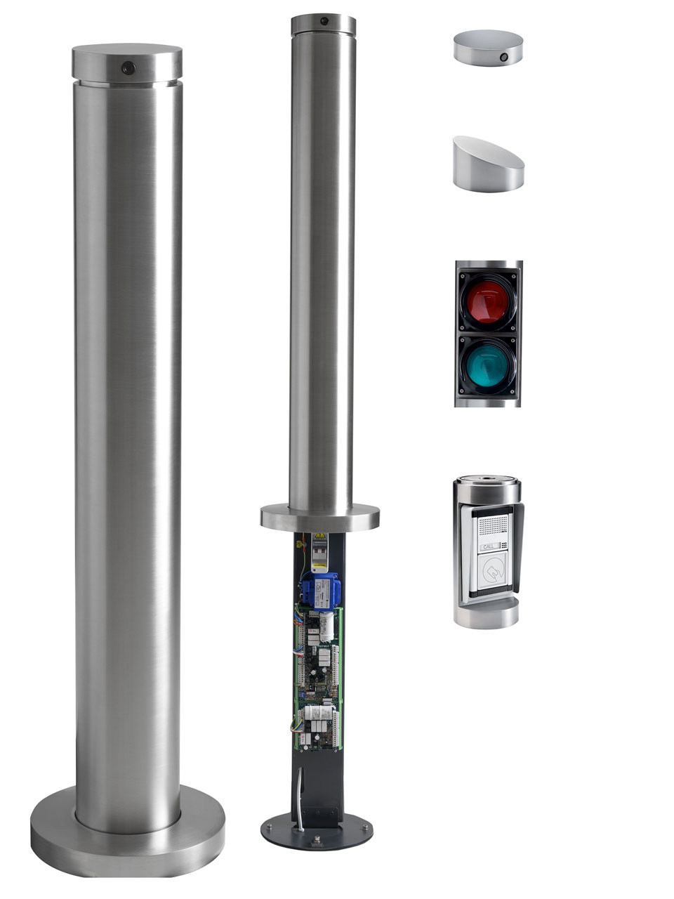 - Intégration de feux de signalisation, de lecteur de cartes et d’interphone