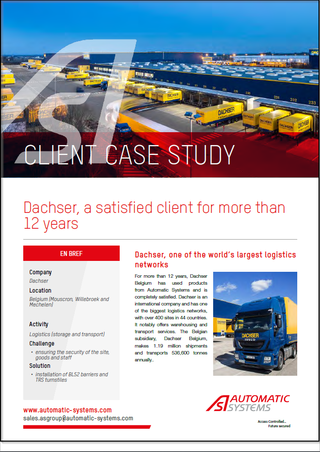 Over the years, the two companies have built a relationship that is firmly based on the quality of products and service. Dachser Belgium has relied on Automatic Systems products for its security for more than 12 years.