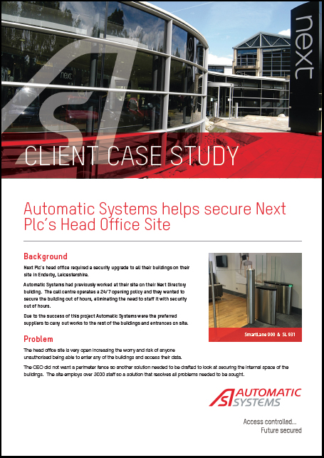 AUTOMATIC SYSTEMS HELPS SECURE NEXT PLC’S HEAD OFFICE SITE